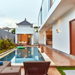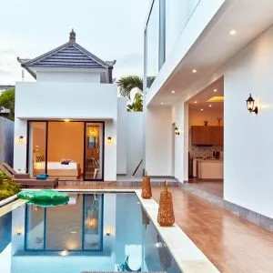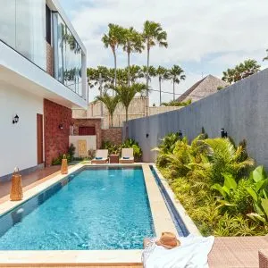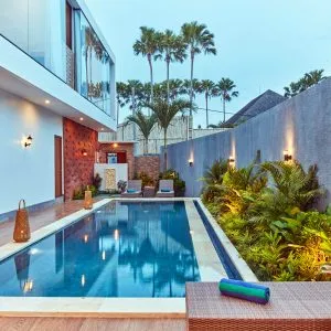 Private Pool Four Bedrooms villa, ideally positioned just steps from the enchanting Echo Beach in Canggu. This sophisticated villa embraces a modern and minimalist aesthetic, providing an expansive haven in the heart of Canggu.
